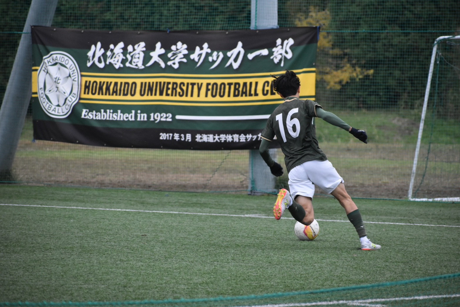 大学生活の前半はほぼ試合に出れなかった。高校の頃はチームの7番を背負っていて、重要な立ち位置にいた。試合はもちろん毎試合出場した(リーグ戦に参加していなくて、時々ある大会くらいだが)。しかし、大学に入ってからは新人戦でさえ出ることはできず、なぜ自分がわざわざ大学に入ってサッカー部を続けているのかわからなくなった。もちろんそのような自分の立ち位置がゆえ、一年の冬に苫小牧の緑が丘公園で行われた入れ替え戦は、観戦組としてコートの外から観客の一人として北大サッカー部の行く末を見守っていた。内容は1対0での勝利。当時のキャプテンの胴上げでそのシーズンが終わった。こんなにも熱い試合は初めてだった。高校の最後の大会なんて比じゃないくらいに。監督やコーチはおらず全ての責任は自分たちプレイヤーにかかっている。負ければ次の一年はチーム全員が降格を経験し、2部で戦うことになる。そんな状況の中選ばれた11人は熾烈な争いをコート上で繰り広げていた。見ているだけだったのに、信じられないくらい心が動かされた。いつもはふざけている先輩も、あんなに優しくてよく笑う同期も多数の観客の歓声の中で戦っている。そこには今までの人生で経験したことのないプレッシャー、喜び、悲しみ、憎しみが詰まっている。そんなフィールドで自分もいつかはプレーしたいと思った。そこから慣れない筋トレ(西方先生ありがとう)に挑戦してみたり、同期や先輩とサッカーについて熱く議論する、一回一回の練習だけでなく一週間、一ヶ月、一年と様々な期間で目標を設定して自分のプレーと向き合うなど、それまで考えもしていなかったことをするようになった。