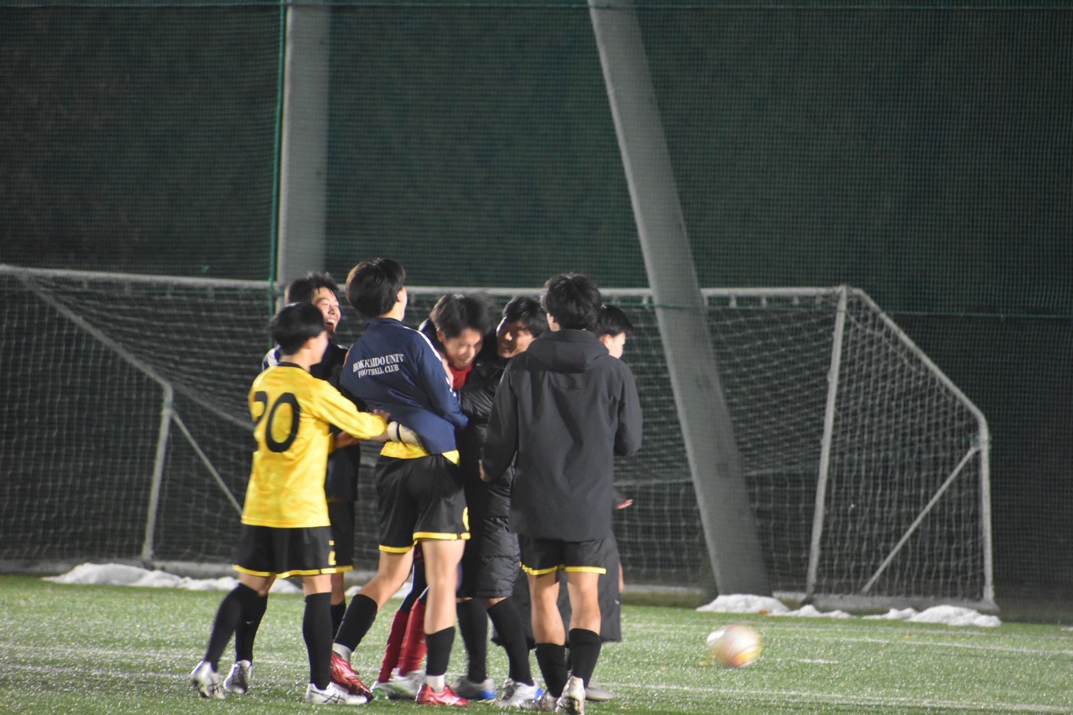 北大は先行で、1人目のキッカーはとうま。相手の逆をついてしっかり決める。素晴らしい。そして相手の1人目。上手い選手だったから決められるかなと心の中で思っていた。が、大沢がコースを読み切り完璧なセーブ!流石です。この辺りから一本目のpkを決めたとうまが、相手選手を煽り始める。その甲斐あってか相手が2本目のpkを外す。北大は海生と啓太がしっかり決めて、見事に勝利。